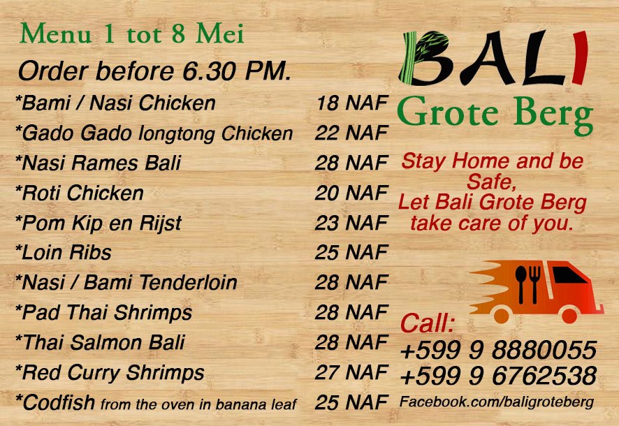 Bali Grote Berg keeps their promise of refined, fresh, homemade, Indonesian, Thai and Surinamese dishes, all with Caribbean cultivated ingredients.